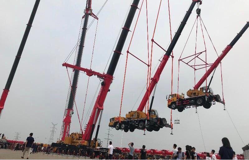 三一SAC6000全地面起重机、STC550T汽车起重机、SPC80T汽车起重机,全球首次使用600吨级起重机完成此项挑战!现场嘉宾纷纷举起手机记录这一震撼人心的时刻!